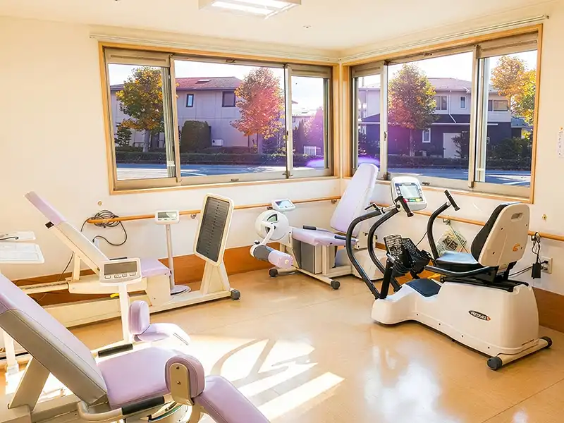 上野原市の緑に囲まれた住宅地にある、広々とした作りの綺麗な施設です。デイサービスに来ていただいた時間を充実したものにできるよう、様々な機器や設備を準備してお待ちしています。